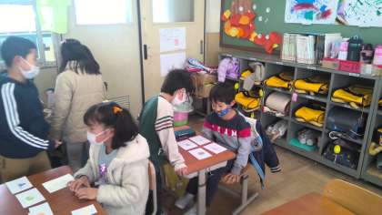 国語の「ものの名まえ」の学習でお店屋さんごっこをしました。楽しそうに活動できました。