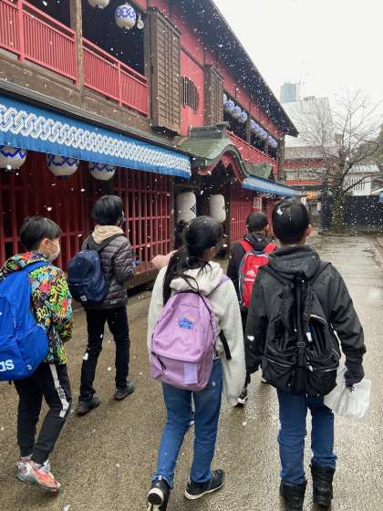 本日、卒業遠足で太秦映画村に行きました。雪が降る中でしたが、風情があって逆によかったです。みんなが楽しく1日過ごすためには、みんなが思いやりをもって行動していかないといけないということを念頭におき、1日過ごしました。