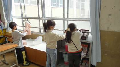 3学期の途中から、掃除の振り返りをし始めました。グループそろって時間通りに始められているか、静かに掃除することができたか、時間いっぱい掃除できたか、掃除道具をきれいにすることができたか、チェックをしています。声を掛け合って、頑張る姿が素敵です。