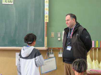 英語で自己紹介をしました。デイビット先生にも頑張って自己紹介していました。