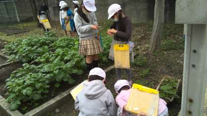 3年生になって理科の学習が始まりました。春の校庭にはどのような生き物がいるのか、さっそく観察に行きました。植物や虫たくさんの生き物を見つけることができました。