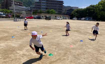 走り出すタイミングをコーンを使って自分たちで考えました。