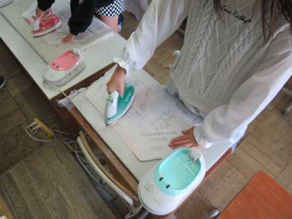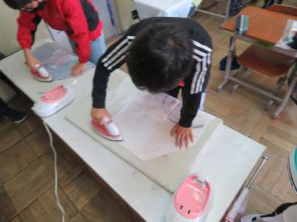 アイロンをかけ、ミシンで縫うの作業を繰り返します。