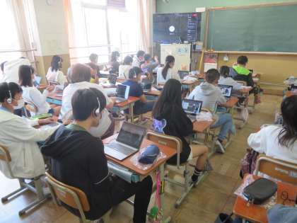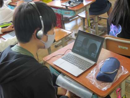 外国語科の学習で、醍醐西小学校の子たちとオンラインで自己紹介をし合いました。