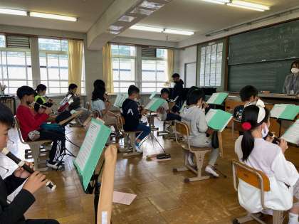 リコーダーで「小さな約束」という曲を練習しています。短調の曲で、短調の響きも感じ取りながら子どもたちは練習を頑張っていました。