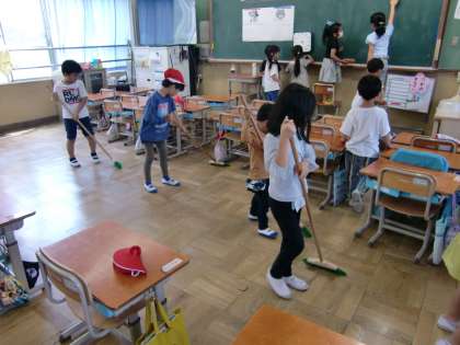 1年生も上手におそうじしています!すみずみまでできるように練習中です。