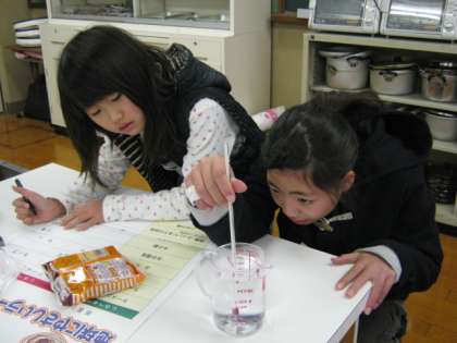 午後からは6年2組が授業をうけました。環境に優しいラーメンを作るために温度もはかりました。