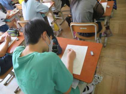 6年生の代表が劇団の人に立派に感想を述べ、教室に帰った後は1人1人、劇団の人へ手紙を書きました。