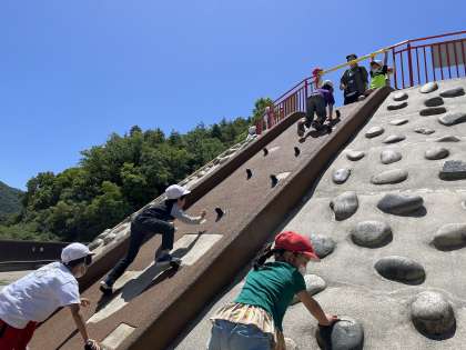 とても良い天気の中、宝が池公園の子どもの楽園に遠足に行ってきました。全員で協力して地下鉄も乗り換え、緑たくさんの公園へ行きました。たくさんの遊具で思いっきり遊んで、みんなでお弁当を楽しく食べました。