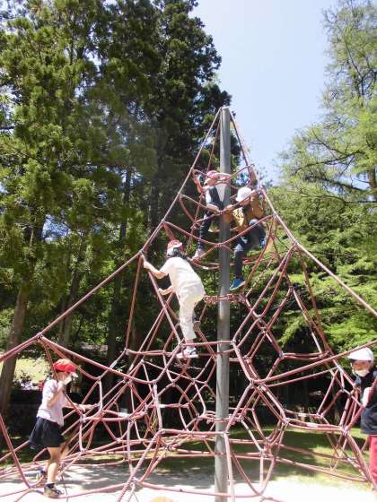 宝が池公園についた途端に目が輝く1年生たち!さまざまな遊具にどんどん挑戦していっていました。