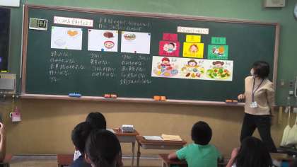 30日(火)の5時間目に、栄養教諭による食育学習がありました。今回は、毎日を健康で過ごすためには、どんな食事ををしたらいいのか、赤・黄・緑の3色のはたらきを生かして考えました。
