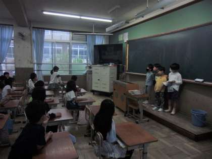何回も練習したおかげで、大きな声で問題を出すことができました。
