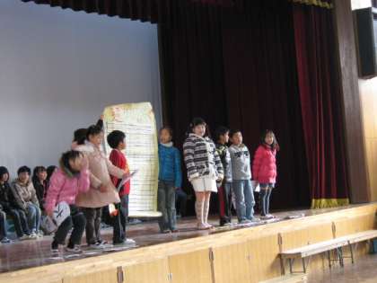 今日の池田東タイムは3年生が発表しました。