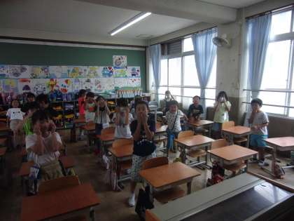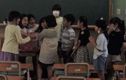 お楽しみ係が「くじぴき」を考えてくれました。はずれが出るとポーズなどするルールでした。くじを引く前にみんなで練習をしました。どきどき・わくわく楽しみました。
