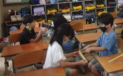 ものさしを使わずに10cmを予想しました。ぴったりの長さを予想するのが難しかったようです。