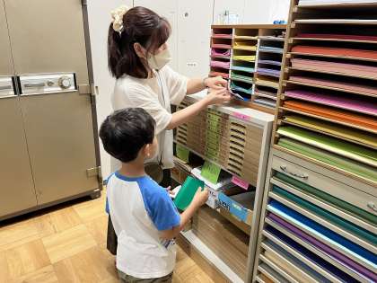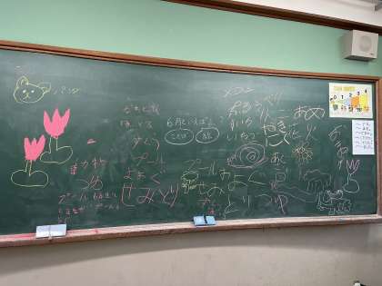 生活単元学習で「6月といえば」をテーマに、たくさんの思いつく言葉や絵を黒板に書きだしました。その中からいくつか選んで、これからおりがみで作っていく計画です。今日はみんなで事務室におりがみをもらいに行きました。入るときの挨拶もばっちり言えました。