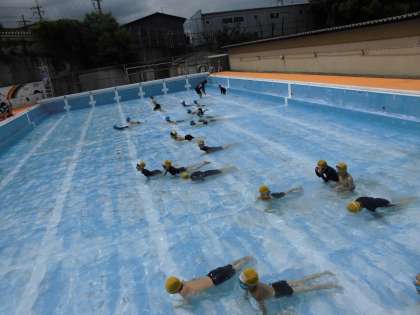 じめじめした天気の中、初めての「みずあぞび」の学習を行いました。冷たいシャワー、大きなプールに、時折歓声をあげながらの学習になりました。次回からは、深いプールになります。楽しみながら水に慣れていきたいと思います。