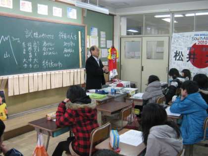 今日の1時間目から,6年生は出前授業を受けました。サッカーの松井選手のお父様からお話を聞いたりDVDを見せていただいたりしました。1組は1・2校時,2組は3・4校時に授業を受けました。