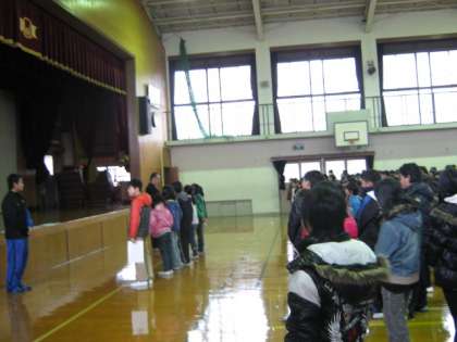 今日から二週間,教師塾の岩瀬亮太先生が池田東に来てくださいます。朝会で岩瀬先生の紹介をしてから,賞状渡しをしました。