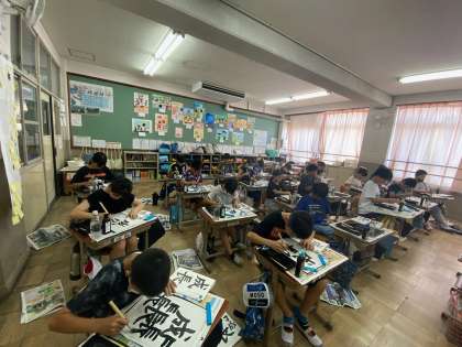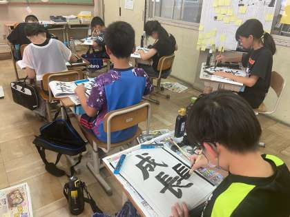 習字で「成長」という字を書きました。筆順に気を付けて、字形を整えて書くことができました。とても集中して取り組んでいました。