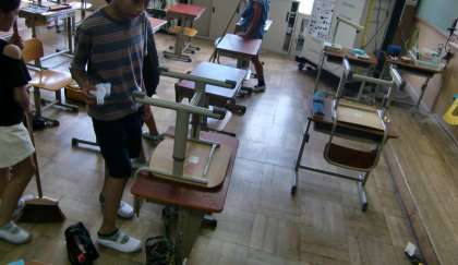 今日は、いつもより範囲を広げて大掃除。1学期間の感謝を込めてお掃除です。