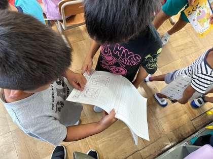 国語で言葉パズルを作りました。前の時間に教科書にのっている言葉の隠れたパズルの中から、たくさんの言葉を見つけ出していた子どもたち。今回は自分たちでパズルを作ることに挑戦しました。最後は作ったパズルを友だちと交流して楽しみました。