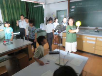月と太陽の模型を使って、月の満ち欠けを調べました。