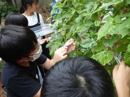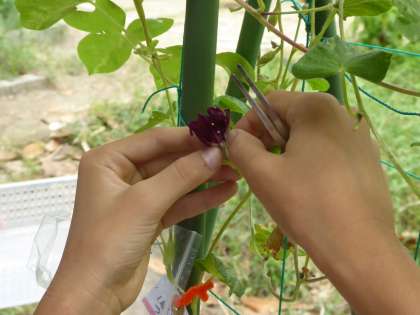 理科の学習で、受粉をするとどうなるかの実験をしています。アサガオの花が咲く前におしべを取ってめしべだけを残し、開花後に一方にのみ受粉させてその後の変化を調べる実験です。結果がどうなるか楽しみです。