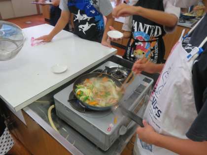 材料の切り方や、火加減に気をつけて、どの班もおいしいいろどり炒めを作ることができました。
