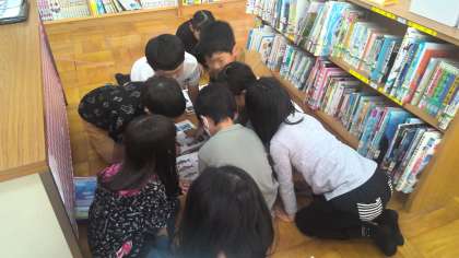 今週も図書館に行きました。読書している人・図鑑で海の生き物を探している人。