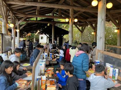 みんなが持ってきた牛乳パックにホットドッグを入れて作ります。