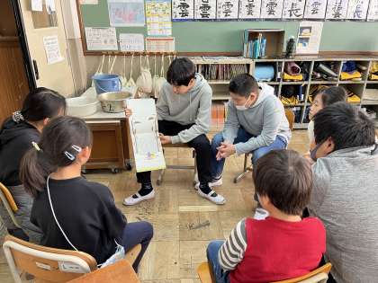 今日のフレンドリーは、絵本の読み聞かせでした。5・6年生が自分たちで本を選んで用意をして、一生懸命読んでいました。初めて出会う本に、前のめりになって聞くようすがとても可愛らしかったです。
