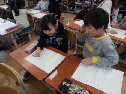 国語の学習で、友達のことをもっと詳しく知るために、「今、一番楽しいことはなにか」を尋ね合う活動をしています。「○○が楽しいです。」との答えに、「どうして楽しいんですか?」とわけを尋ねたり、楽しんでいる時間や場所、一緒に楽しんでいる人を聞いたりして、友達の楽しいことをさらに詳しく知るための質問を繰り返していきました。