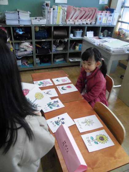 国語の「ものの名まえ」の学習で、お店屋さんごっこをしました。たくさん作ってきた商品カード(一つひとつの名まえ)を確認しながら楽しみました。