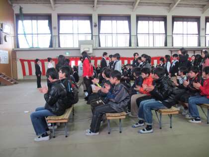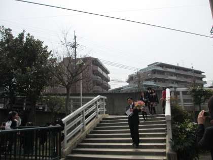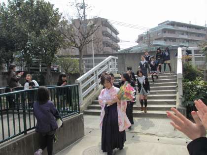 保護者謝辞の後,卒業生は退場して教室に戻りました。その後,教職員・在校生・保護者・来賓の方々に見送られ校門を出ました。