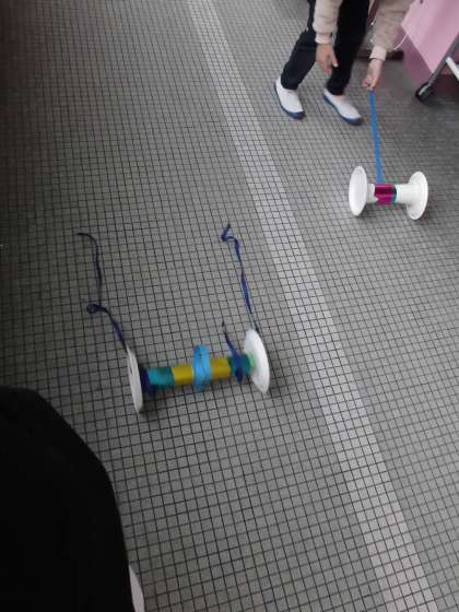 動きを確かめた後は、飾りをどんどん付けていきます。飾りを少し付けては、転がった様子を確かめ、さらに飾りを付けてみる…など、何度も試行錯誤しながら、作り進めました。