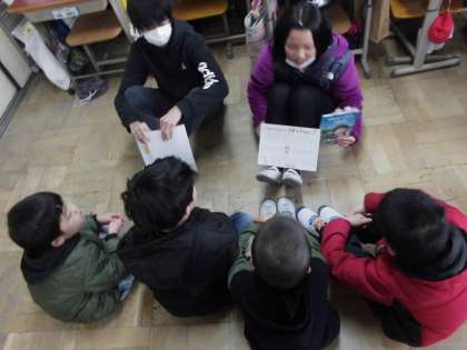 5年生が国語科の学習の一環で、1年生に本紹介をしてくれました。紹介ポスターにまとめたことを基に、実際の本を見せながら、分かりやすく教えてくれました。今までに読んだことのないジャンルの本も多く、一年生も興味を持って聞いていました。