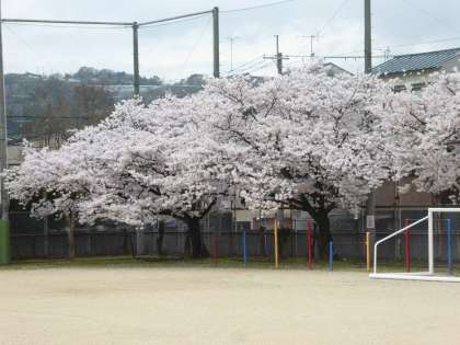 入学式を明後日に控え、校庭や正門の桜が満開になっています。