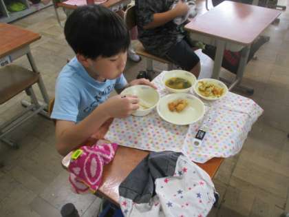 給食を食べています。