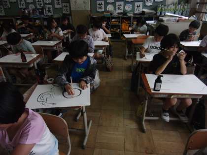わりばしと墨汁を使って、下絵を描きました。洞窟の様子や宝にたどり着くまでの地図を描きました。ひとりひとりの想像が広がっていました。