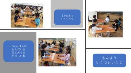 さんすう「いくつといくつ」の学習のまとめにペアで問題を出し合う活動をしました。順番に問題を出し合って楽しく学習のまとめをしていました。