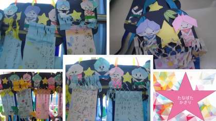 七夕飾りをつくりました。折り紙で織姫や彦星・天の川・貝殻などを作りました。その後短冊に願い事を書きました。すてきな願いがいっぱいでした。みんなの願いが叶いますように。