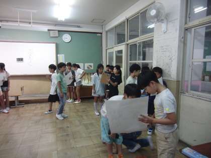 どんな自由研究をしたのかを簡単に発表し合いました。友達がまとめたものを興味深そうにのぞき込む様子が見られました。