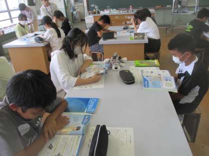 水溶液を混ぜたり匂いだりして学習しました。