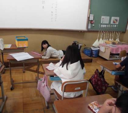 21日(月)の2時間目に、視力検査がありました。視力検査前に、欅先生から姿勢についての話しをしていただきました。