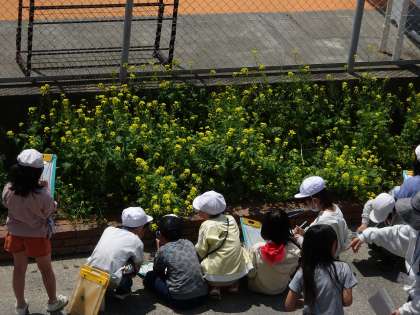 植物の観察です。観察カードがどんどん上手にかけるようになってきました。外での学習もとっても楽しそうな3年生です。