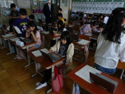 今後の授業のために、タブレットの使い方を学びました。友達同士の学び合いがよくできました。