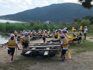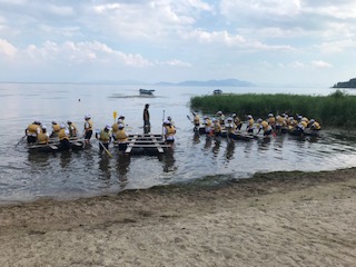 いかだで琵琶湖へ