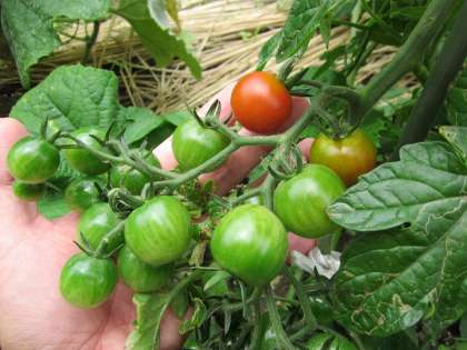 今日は、休みの間に赤く実ったミニトマトを収穫して、早速食べました。