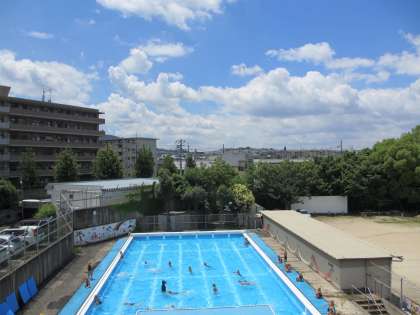 梅雨の晴れ間が広がる中,今日は,4年生と3年生が水泳学習をしました。